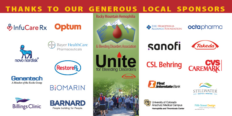RMHBDA is proud of our annual UNITE for Bleeding Disorders walk for Montana and Wyoming, benefiting those suffering from bleeding disorders in Montana and Wyoming communities. This is our major fundraising event and brings our chapter and sponsors together in a celebration of our two-state community.